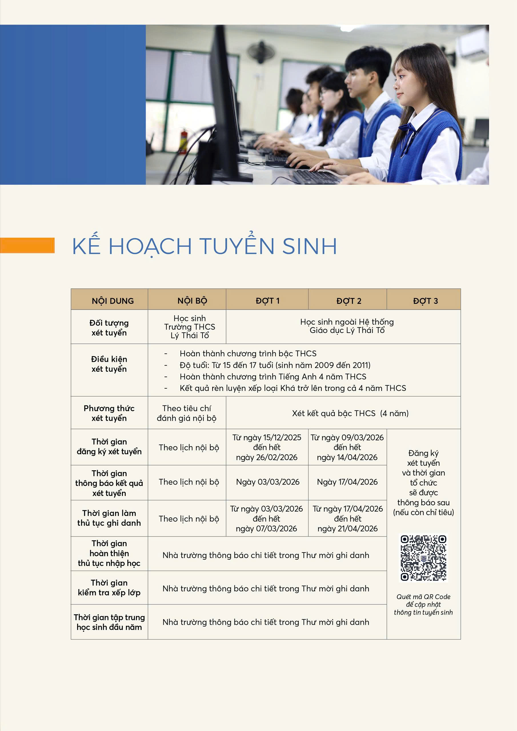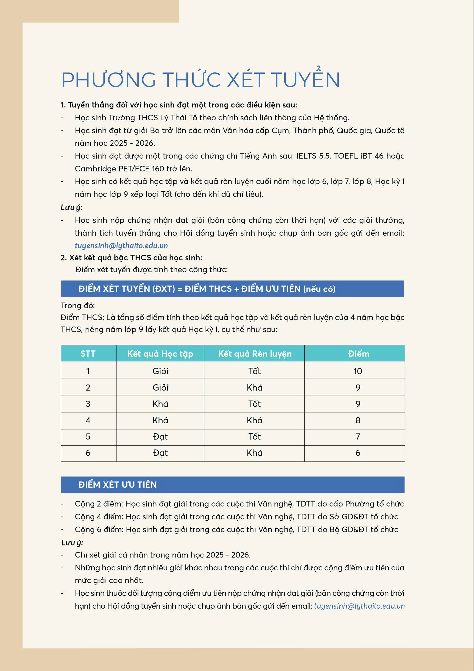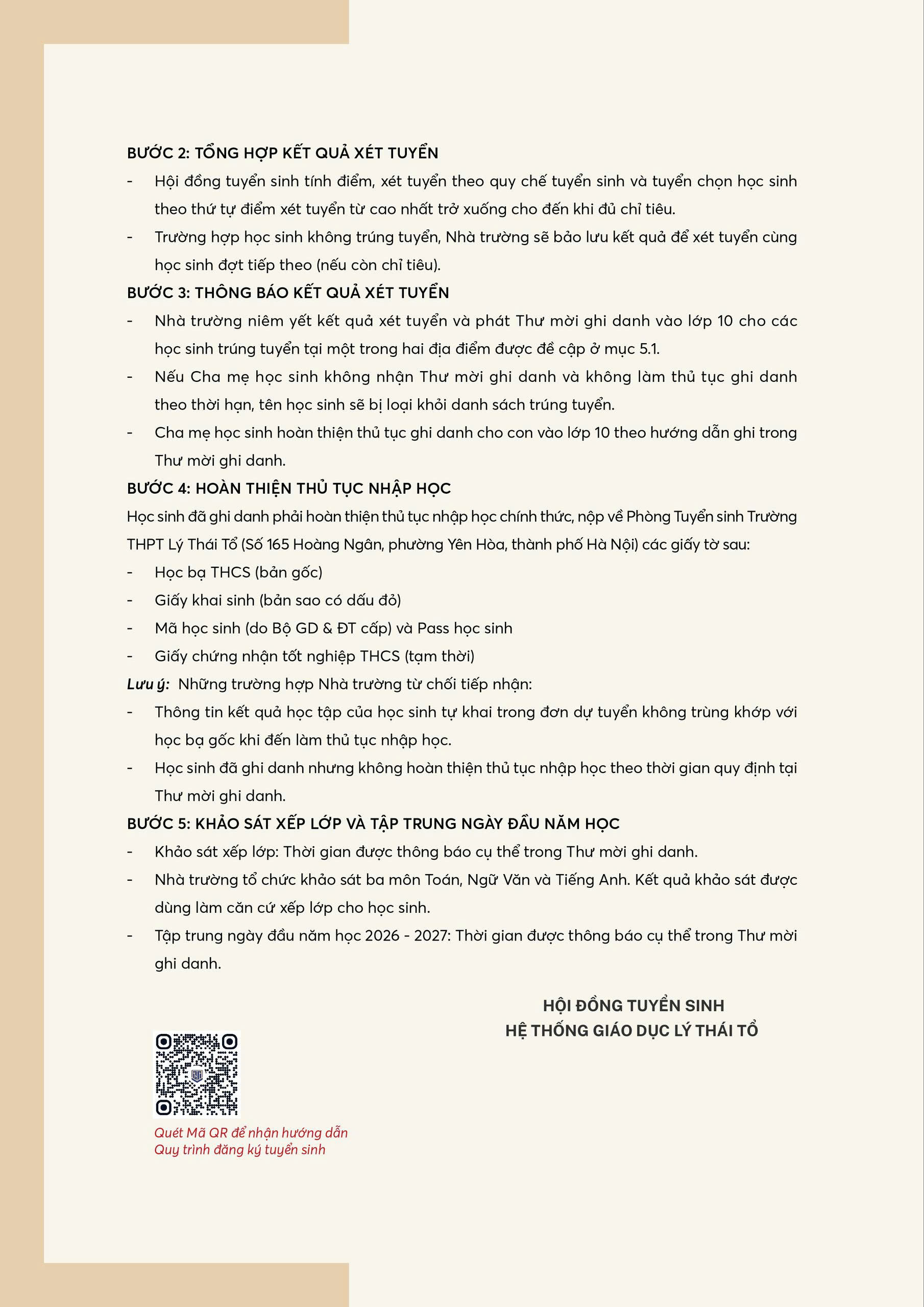 TRƯỜNG THPT LÝ THÁI TỔ THÔNG BÁO TUYỂN SINH NĂM HỌC 2026 - 2027: