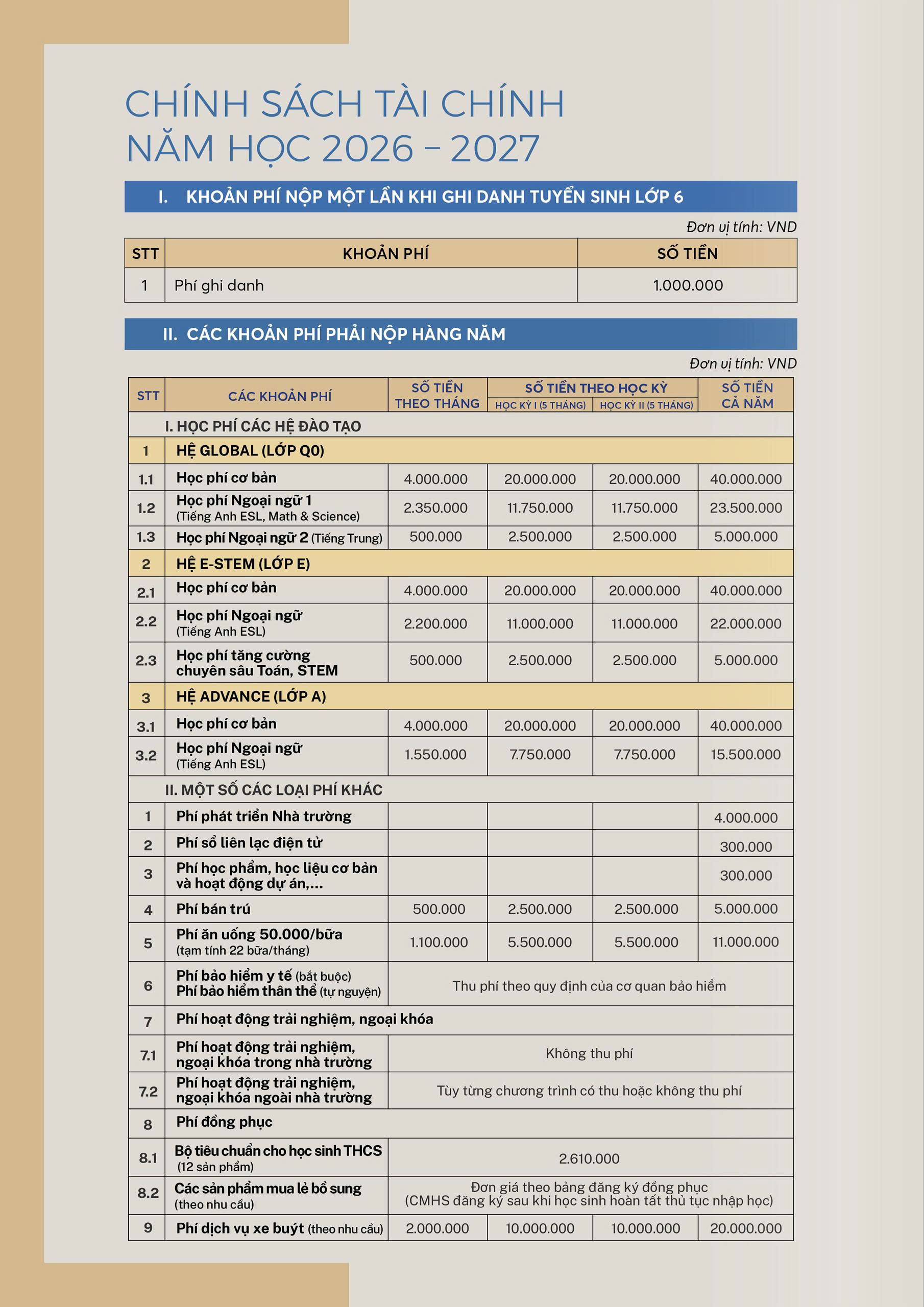 Thông báo tuyển sinh lớp 6 năm học 2026-2027