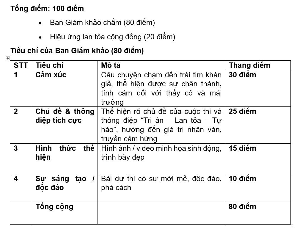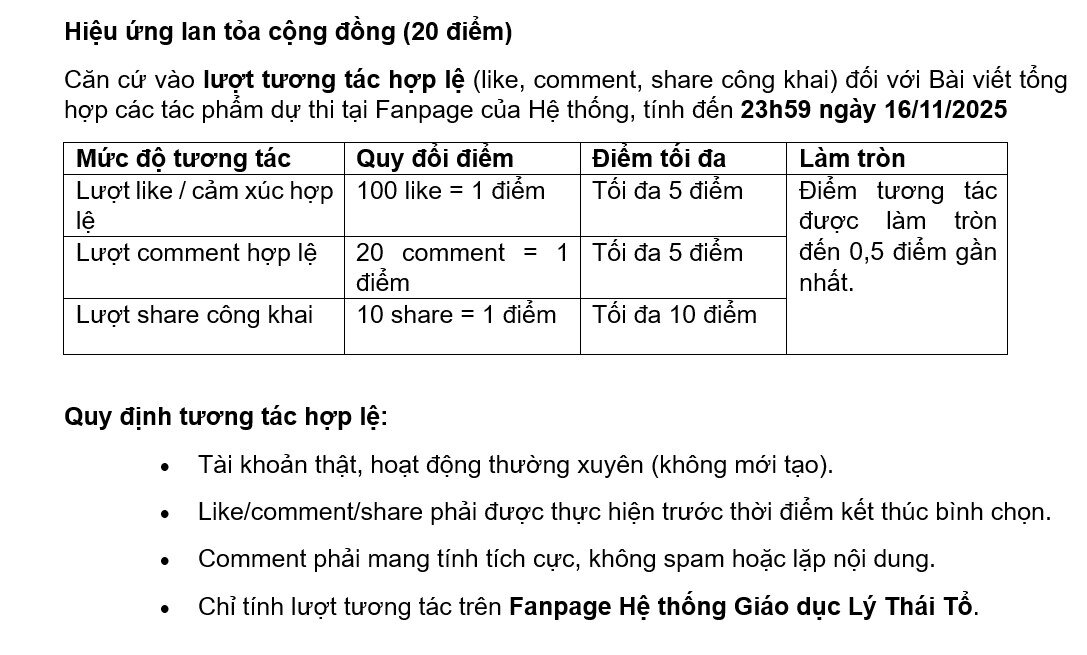 - Đăng bài trên Facebook cá nhân của học sinh hoặc PHHS (ở chế độ công khai) kèm các hashtag: #thang11yeuthuong #TriAnThayCo #20thang11 #HeThongGiaoDucLyThaiTo