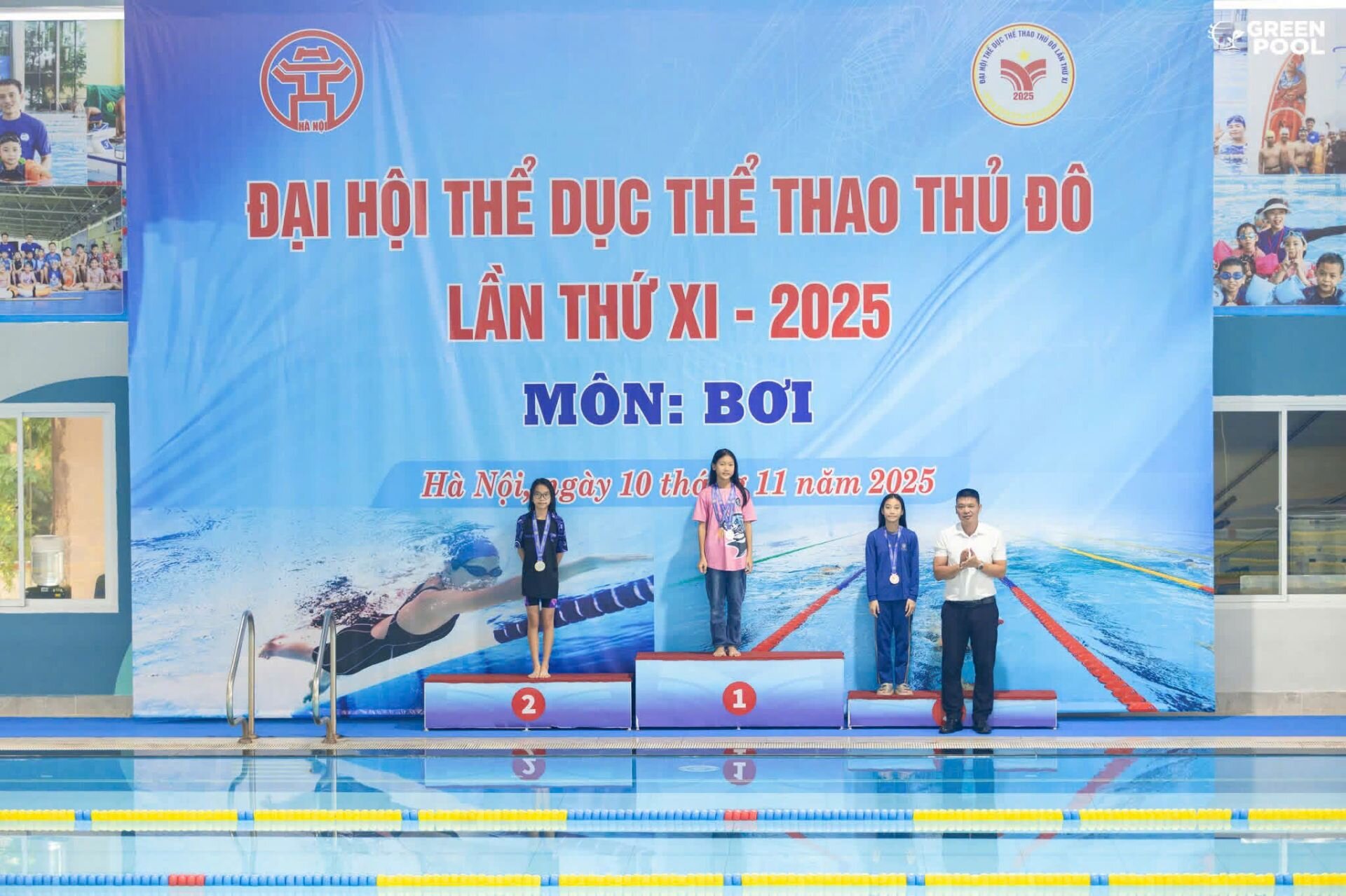 Bên cạnh đó, em Dương Tú Linh, học sinh lớp 6Q0, cũng ghi dấu tại Đại hội khi giành Huy chương Đồng ở nội dung bơi ếch 100 mét. Dù mới chỉ học lớp 6, Tú Linh đã thể hiện tinh thần thi đấu bền bỉ, kỹ thuật tốt và sự tự tin đáng khích lệ.