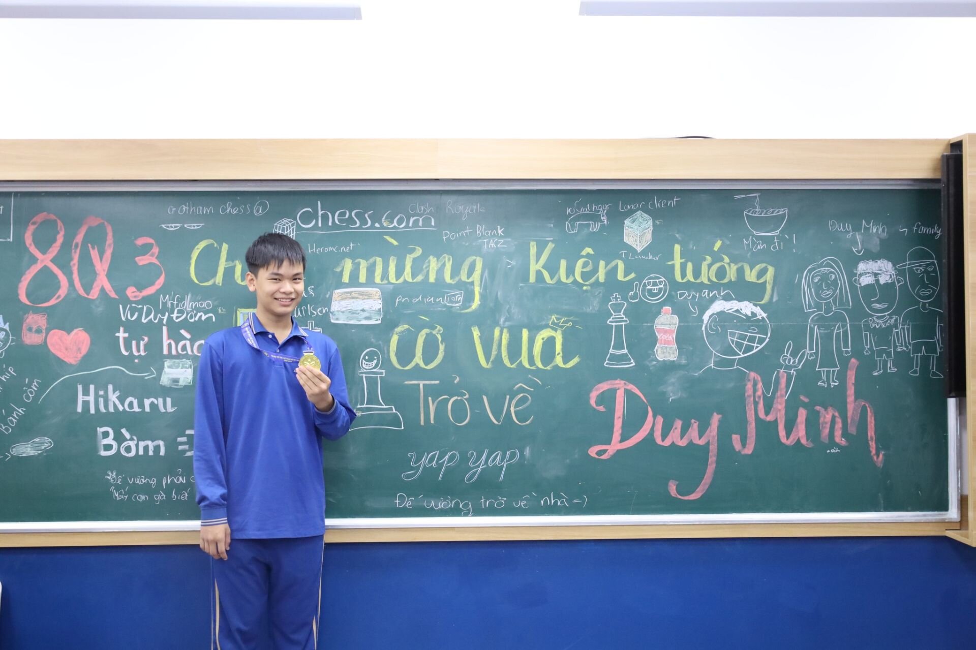 Em Vũ Duy Minh, học sinh lớp 8Q3 xuất sắc đoạt Huy chương Vàng cờ vua. Em Dương Tú Linh, học sinh lớp 6Q0 ghi dấu tại Đại hội khi giành Huy chương Đồng ở nội dung bơi ếch 100 mét