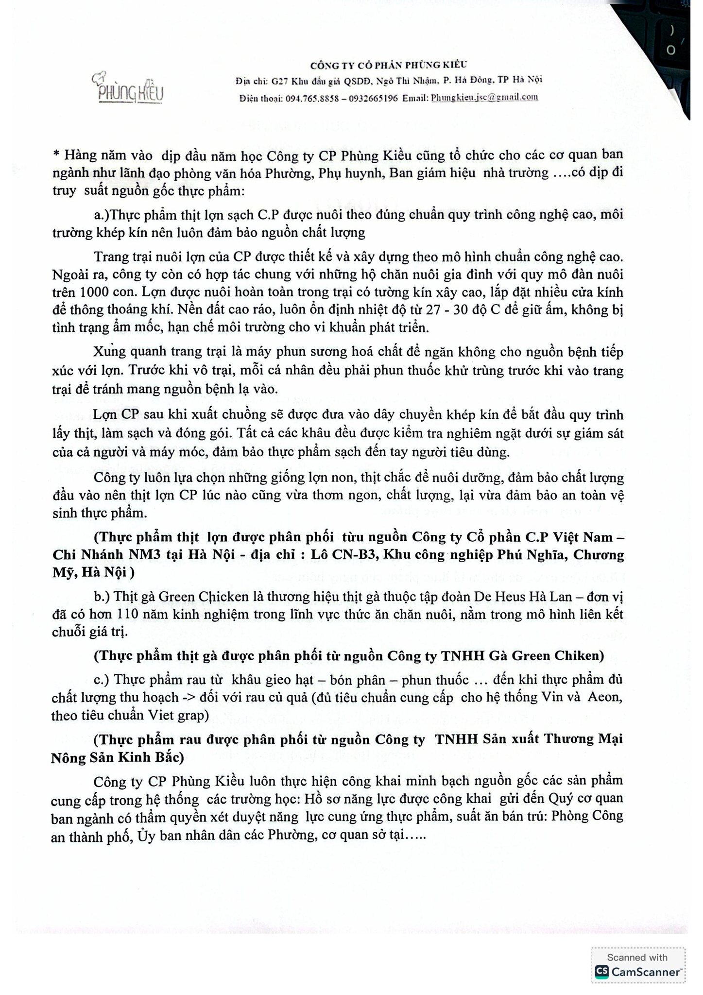 Theo thông tin mới nhất của CTCP Phùng Kiều được gửi tới Hệ thống ngày 31/3/2026 (được đính kèm thông báo này), CTCP Phùng Kiều làm việc với các đơn vị cung cấp thực phẩm uy tín, có đủ hồ sơ, chứng từ chứng minh nguồn gốc và kiểm định chất lượng theo quy định, bao gồm: