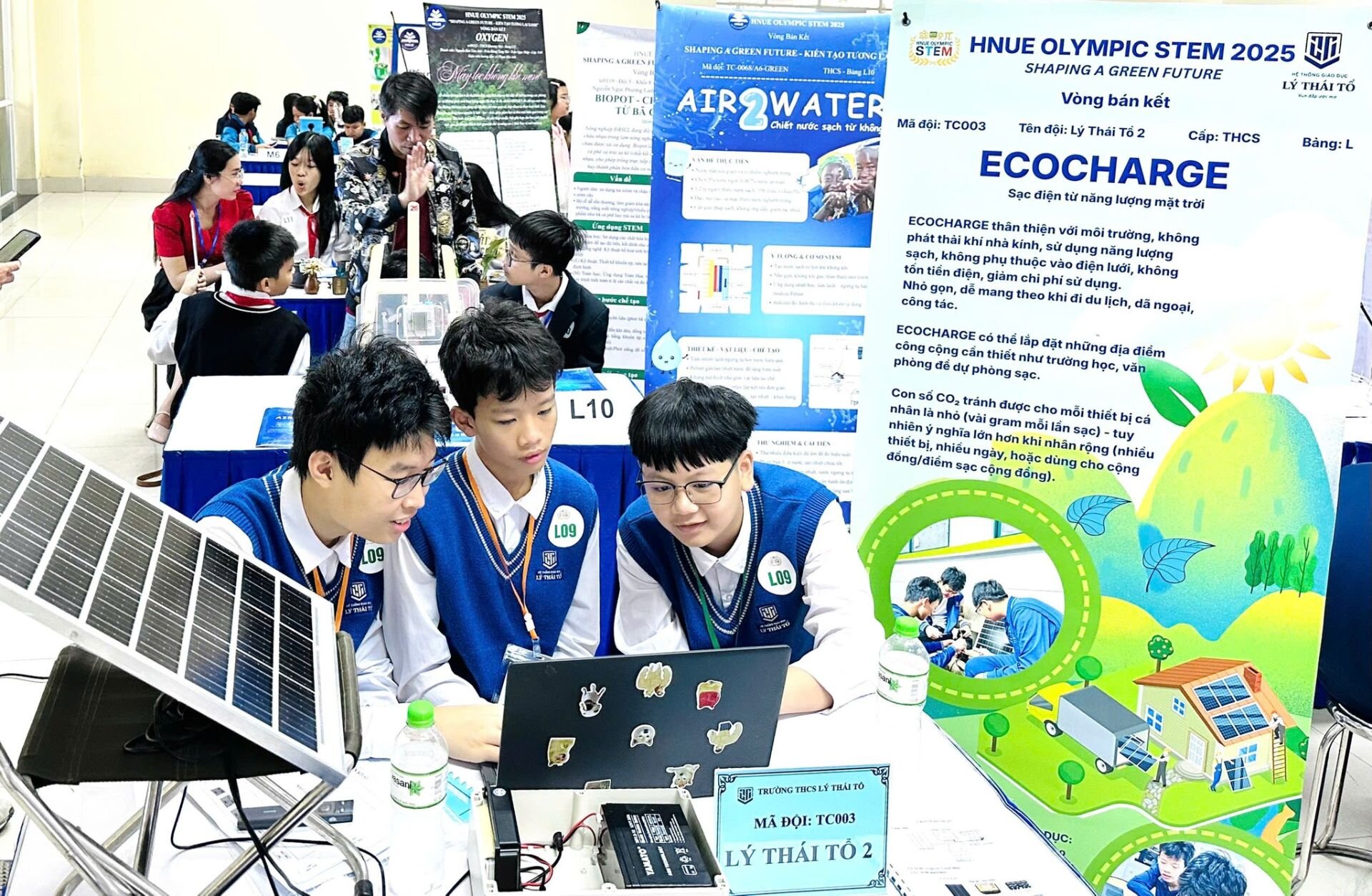 Không chỉ tỏa sáng ở sân chơi học thuật, tại cuộc thi HNUE Olympic STEM 2025 với chủ đề “Kiến tạo tương lai xanh – Shaping a Green Future” do Trường Đại học Sư phạm Hà Nội tổ chức với 1900 đội trên toàn quốc tham gia, Trường THCS & THPT Lý Thái Tổ có 03 đội xuất sắc được lọt vào vào Bán kết