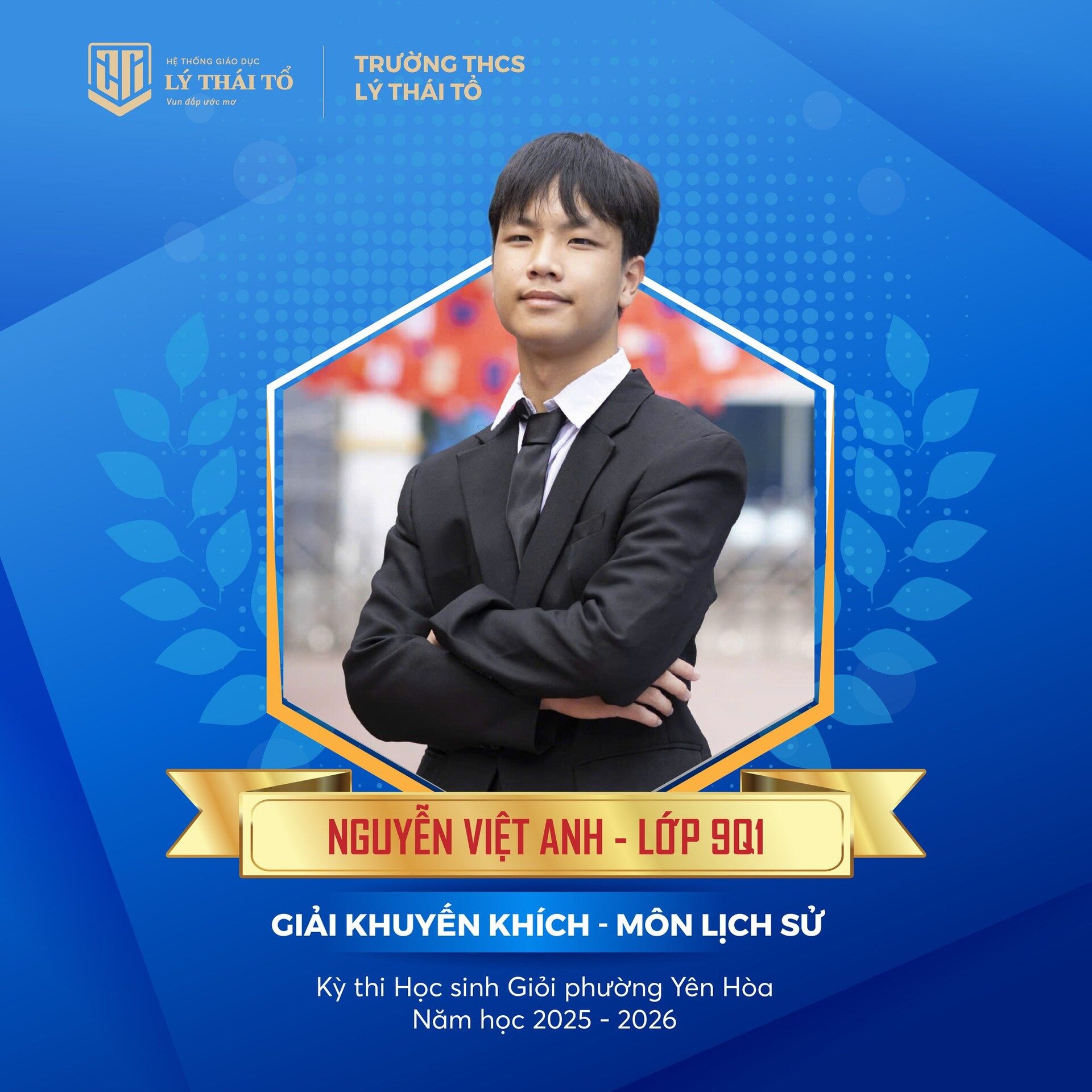 Những kết quả đáng khích lệ này không chỉ là niềm tự hào của các em học sinh mà còn là thành quả từ sự tận tâm của các thầy cô giáo, sự đồng hành của cha mẹ học sinh và môi trường học tập giàu cảm hứng tại trường THCS Lý Thái Tổ.