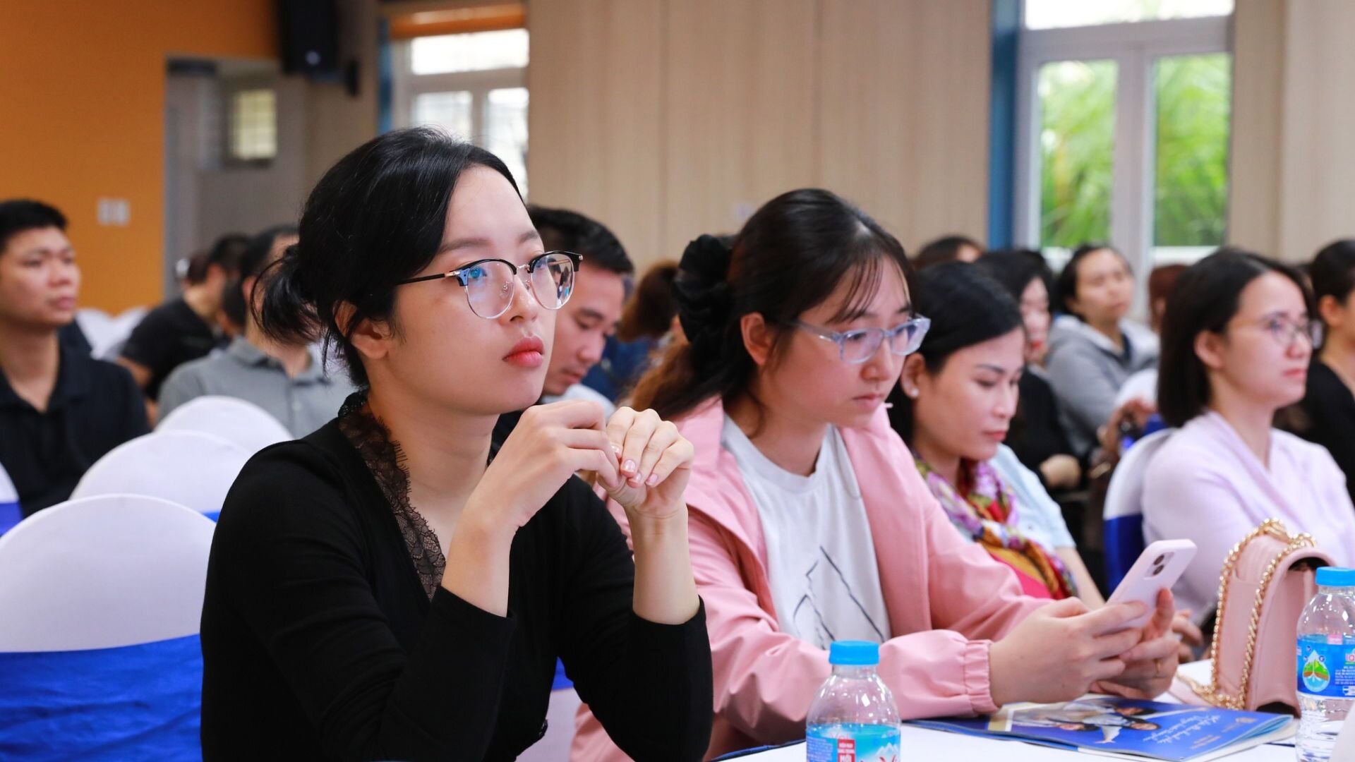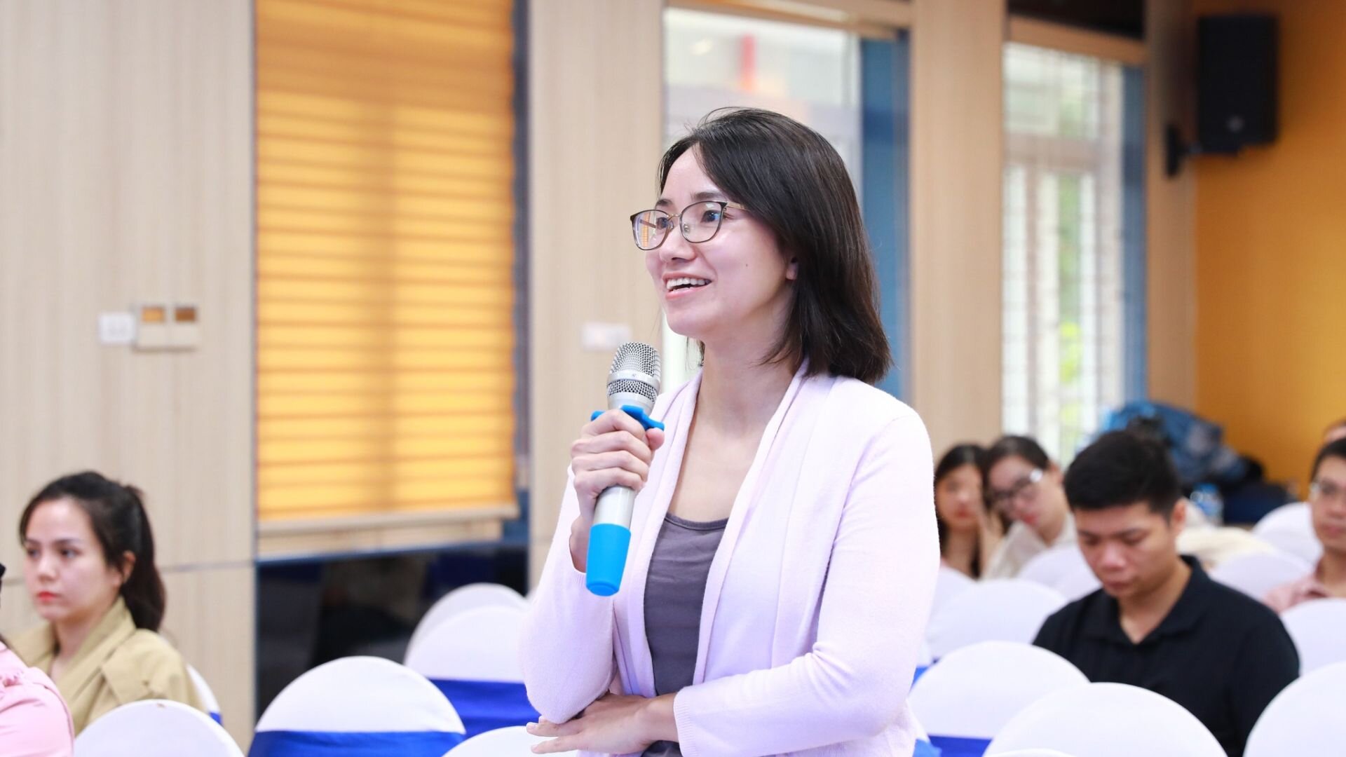 Hội thảo có một phần chia sẻ hết sức thiết thực từ cô Lê Hoàng Phương Nhung – Giám đốc Chương trình Ngoại ngữ và Hợp tác Quốc tế về nội dung đào tạo tiếng Anh liên thông tiêu chuẩn Anh Quốc tại Hệ thống.
