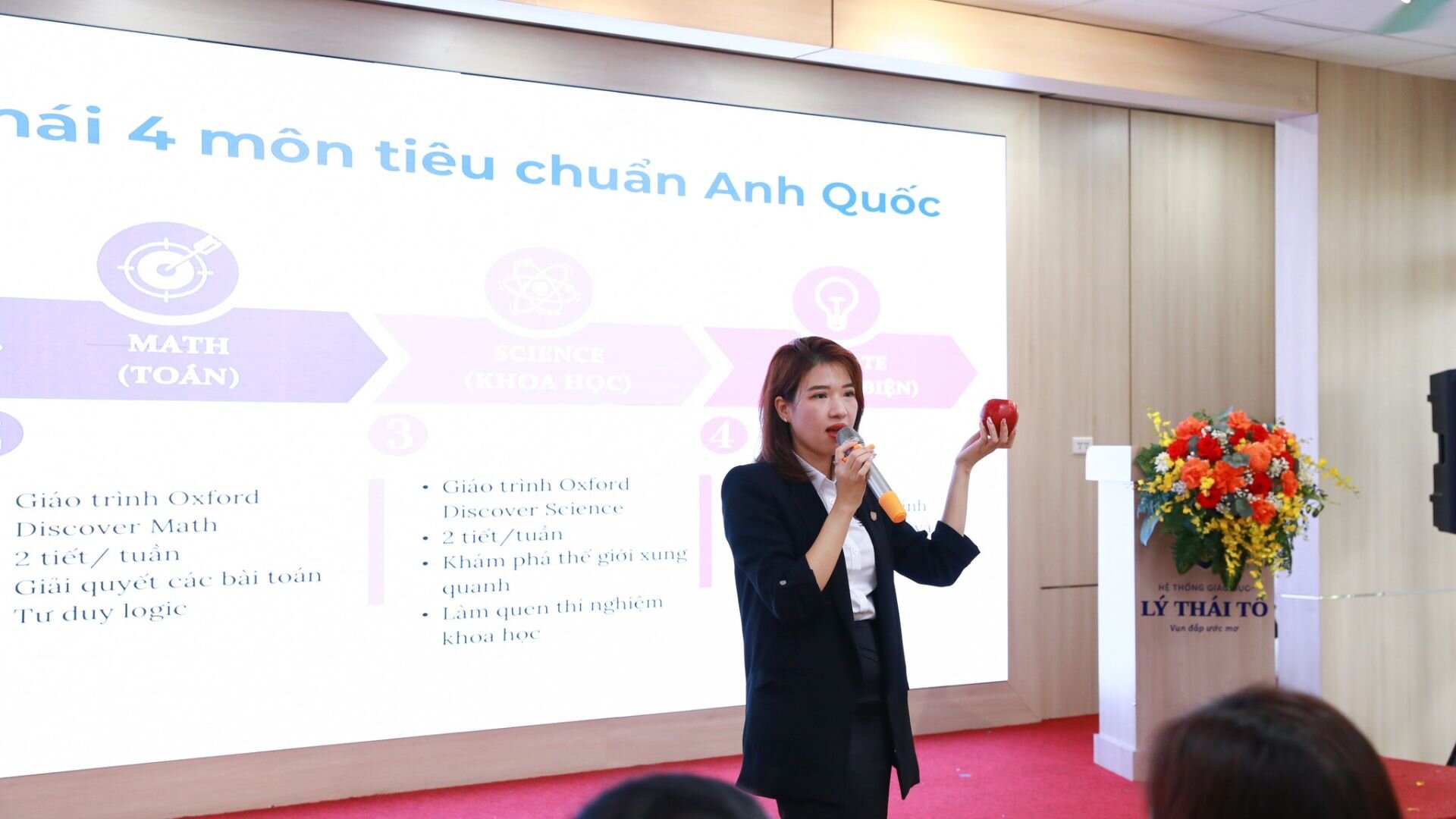 Với mô hình học tập tích hợp liên môn (CLIL) và phương pháp Học tập theo dự án (PBL), học sinh không chỉ học ngôn ngữ, mà còn được mở rộng kiến thức Toán, Khoa học và Kỹ năng tranh biện bằng Tiếng Anh ngay từ lớp 1, nuôi dưỡng tư duy toàn cầu và bản lĩnh hội nhập vững chắc. Hơn nữa, cô đã mang đến góc nhìn toàn diện về Chương trình Tiếng Anh OIC chuẩn quốc tế từ Đại học Oxford đang được Lý Thái Tổ tiên phong triển khai đồng bộ trong những năm học tới.