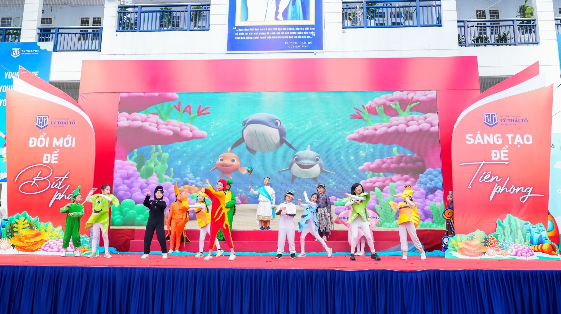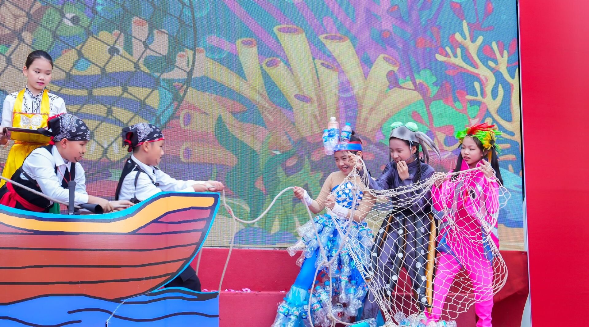 "Tears of the Ocean" do các bạn học sinh khối 5 biểu diễn là lời cảnh tỉnh đầy xúc động về môi trường biển, nơi các bạn nhỏ thể hiện trách nhiệm của một “công dân toàn cầu nhí”