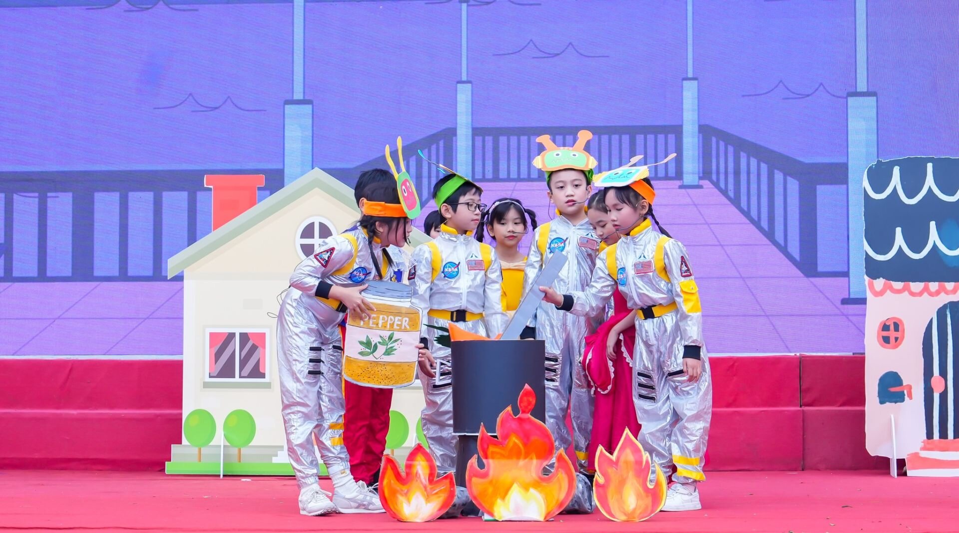 Đặc biệt là các vở kịch năm nay không phải những kịch bản có sẵn, mà được chuyển thể từ chính những tác phẩm song ngữ do học sinh tự sáng tác. Điều ấy khiến từng câu thoại, từng phân đoạn đều mang dấu ấn riêng biệt của tư duy trẻ thơ – chân thật, giàu cảm xúc và đầy tính giáo dục.
