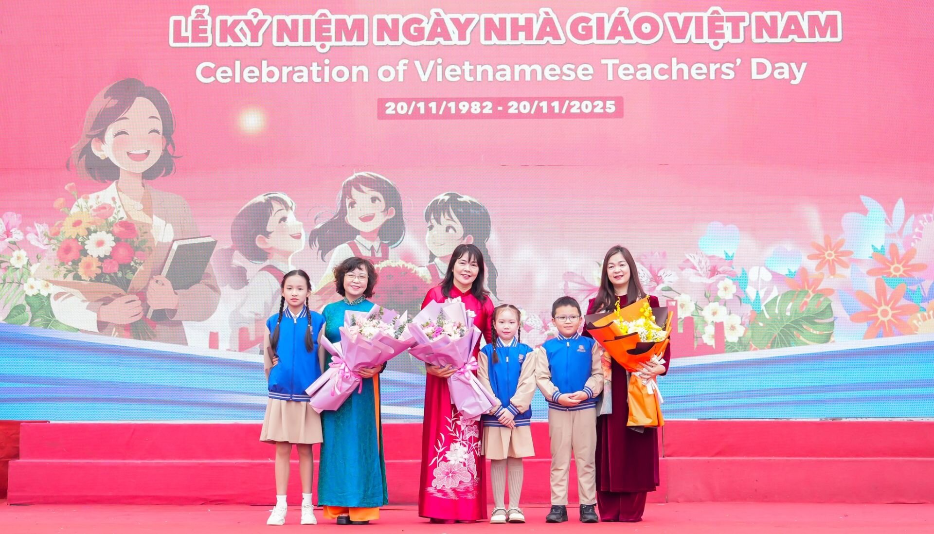 Phát biểu tại buổi lễ, nhà giáo Huỳnh Thị Hương – Hiệu trưởng nhà trường, bày tỏ niềm tự hào về những thành quả mà tập thể giáo viên đã đạt được trong thời gian qua: đổi mới phương pháp dạy học, phát triển năng lực học sinh, tăng cường tiếng Anh, đồng thời tiếp tục nhận được sự tin yêu của phụ huynh. Mỗi thành tích, mỗi bước tiến đều là minh chứng cho tâm huyết của những người thầy – những người đã lặng thầm gieo mầm tri thức và nuôi dưỡng ước mơ cho thế hệ tương lai.