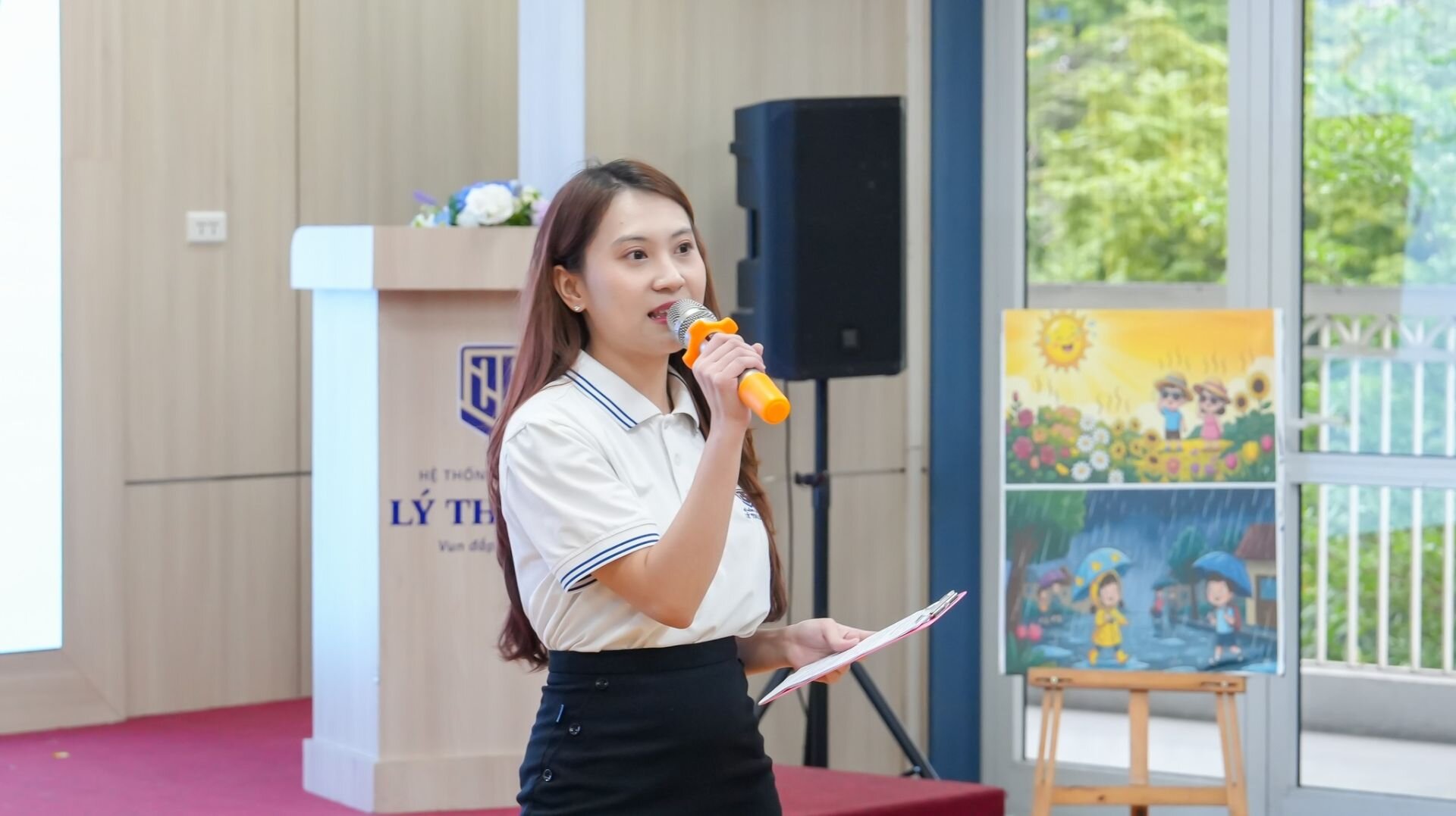 Cô Minh Hoà trình bày các giải pháp nâng cao hiệu quả luyện đọc đúng. Theo đó, từ thực tế giảng dạy của bản thân — việc phối hợp với phụ huynh đóng vai trò rất quan trọng trong quá trình luyện đọc đúng cho học sinh.Khi gia đình và nhà trường cùng đồng hành, việc sửa lỗi phát âm cho các con sẽ trở nên hiệu quả và bền vững hơn