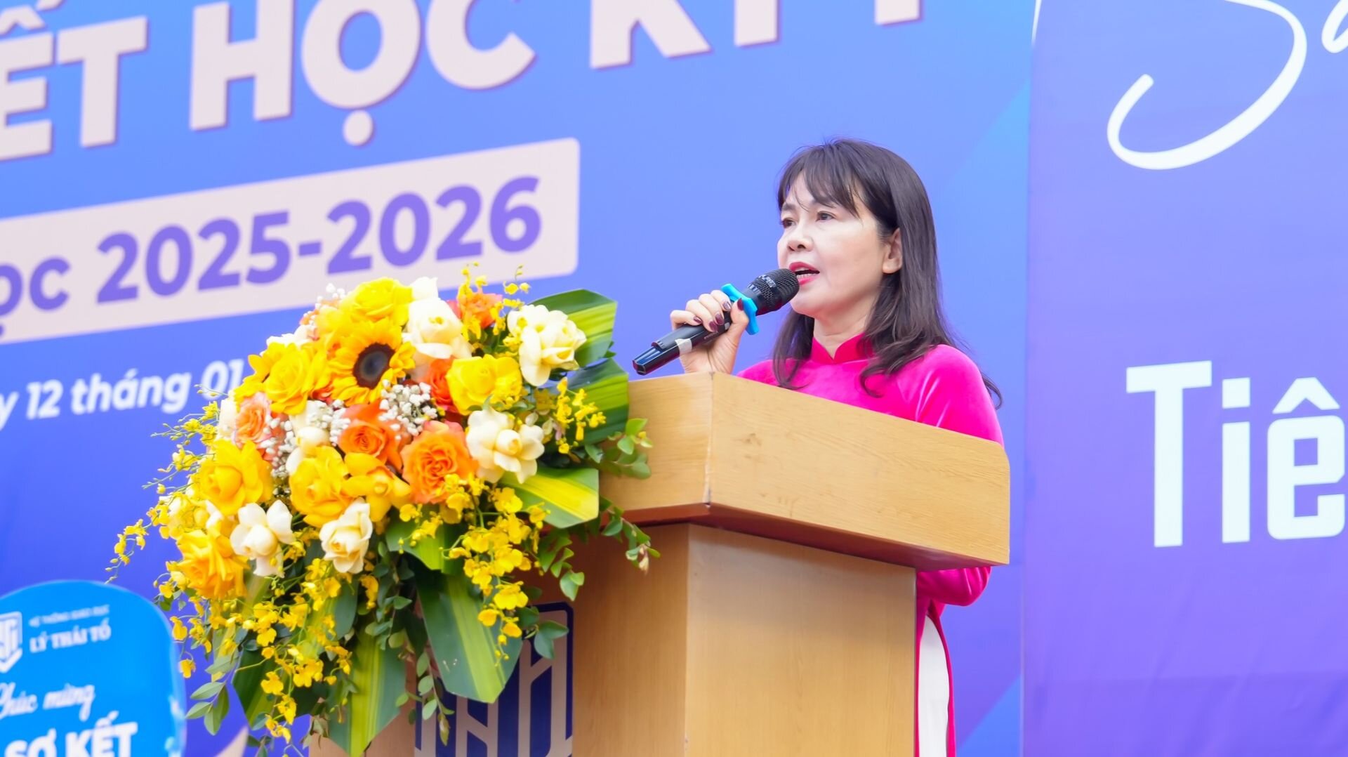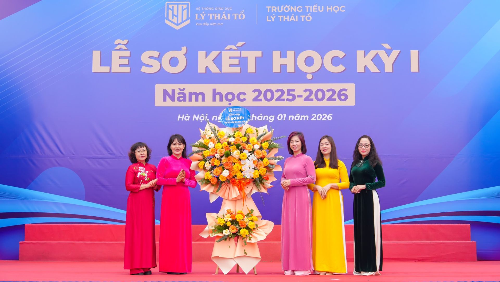 Ban điều hành Công ty Giáo dục Lý Thái Tổ tặng hoa chúc mừng nhà trường nhân dịp sơ kết học kỳ I năm học 2025-2026