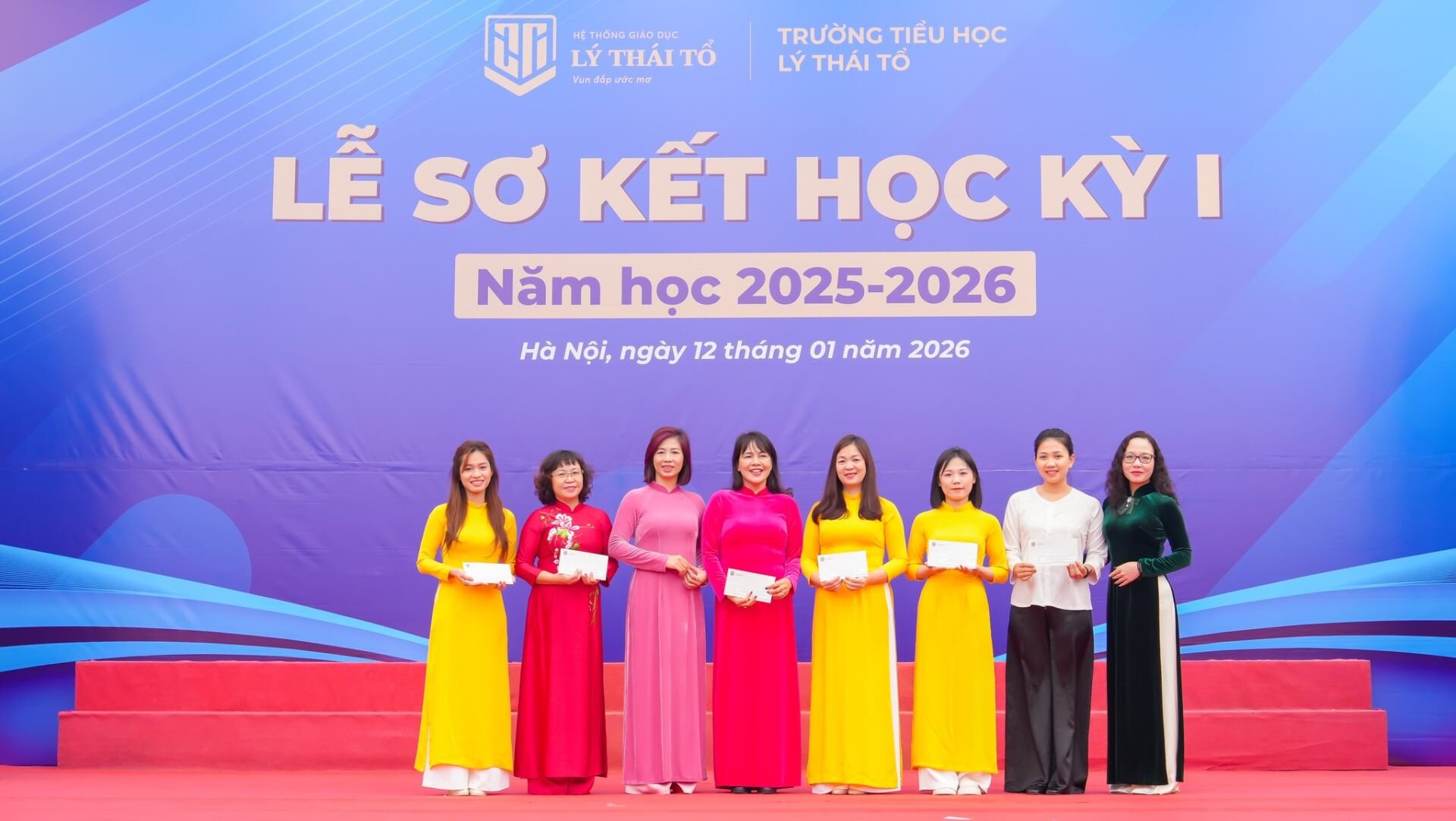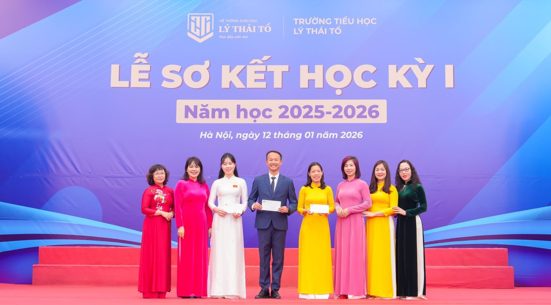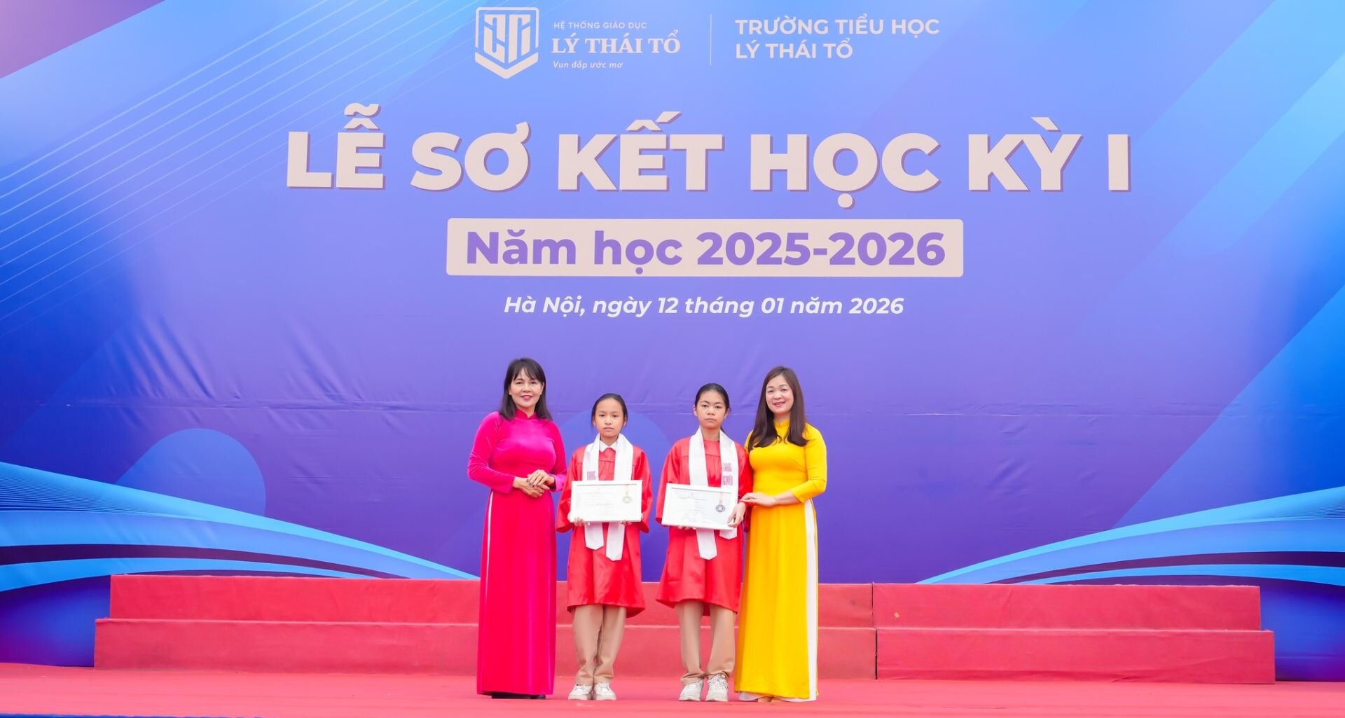 Tại buổi lễ, nhà trường đã vinh danh những tập thể lớp xuất sắc, những thầy cô đạt giải cao tại Hội thi giáo viên giỏi các cấp, sáng kiến chuyên môn tiêu biểu cùng hàng trăm học sinh chăm ngoan, học giỏi, tự tin tỏa sáng tại các sân chơi học thuật, nghệ thuật, thể thao trong nước và quốc tế. Mỗi phần thưởng, mỗi tràng pháo tay chính là sự ghi nhận xứng đáng cho tinh thần cố gắng, ý chí bền bỉ và khát vọng bứt phá của thầy trò Tiểu học Lý Thái Tổ.