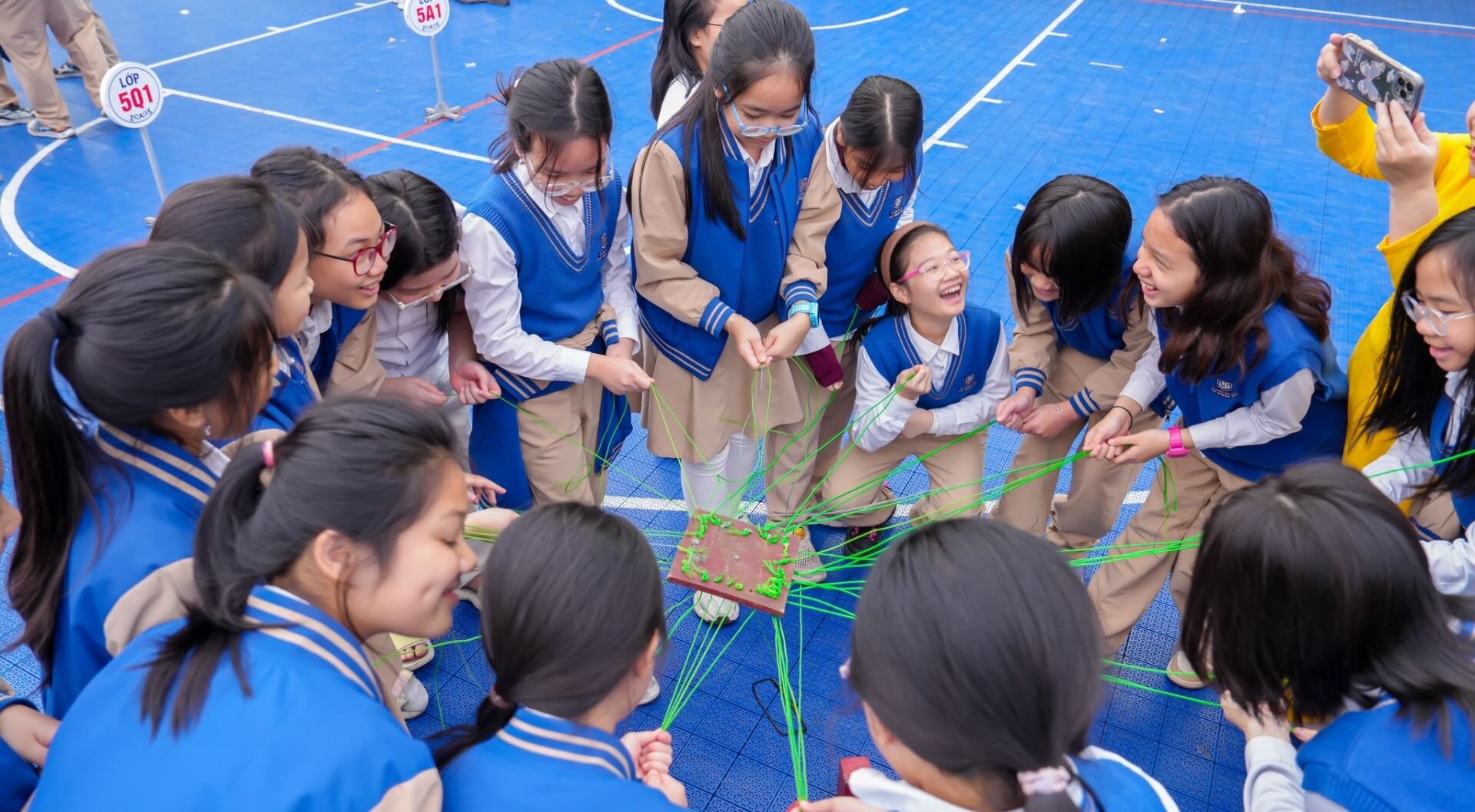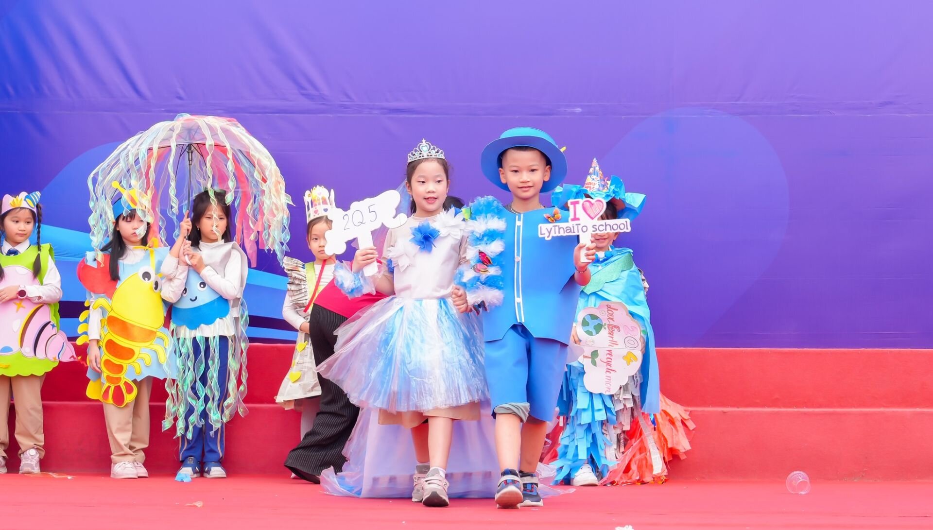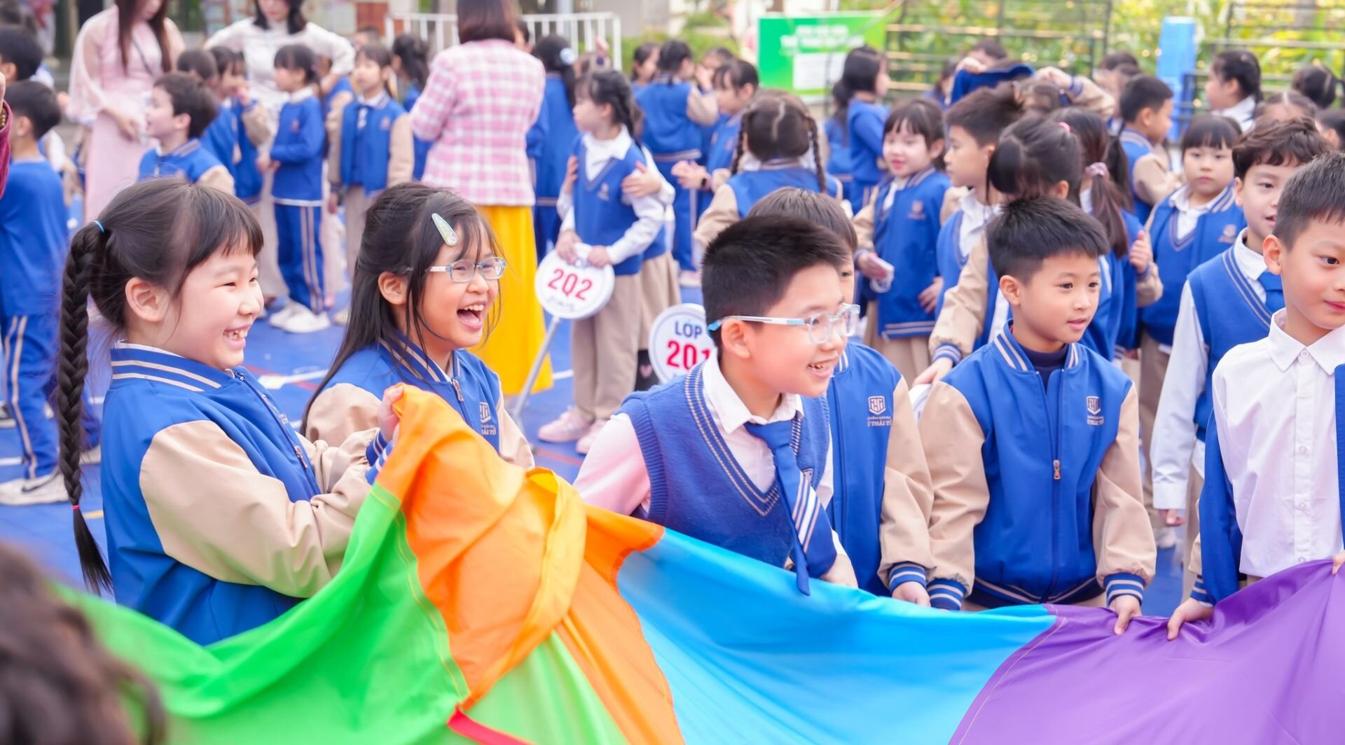 Ngay sau lễ sơ kết, niềm vui tiếp tục được lan tỏa với chương trình teambuilding “CÙNG NHAU TỎA SÁNG – TOGETHER WE SHINE” – một món quà ý nghĩa dành tặng các con học sinh sau những tháng ngày học tập nỗ lực không ngừng. Những trò chơi đồng đội sôi nổi, hoạt động trải nghiệm sáng tạo, đặc biệt là màn trình diễn thời trang tái chế đầy màu sắc đã mang đến tiếng cười, sự gắn kết và những khoảnh khắc tuổi thơ thật đẹp.