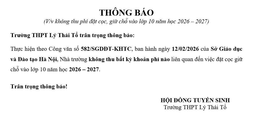Thông báo: Không thu phí đặt cọc, giữ chỗ vào lớp 10 năm học 2026 – 2027