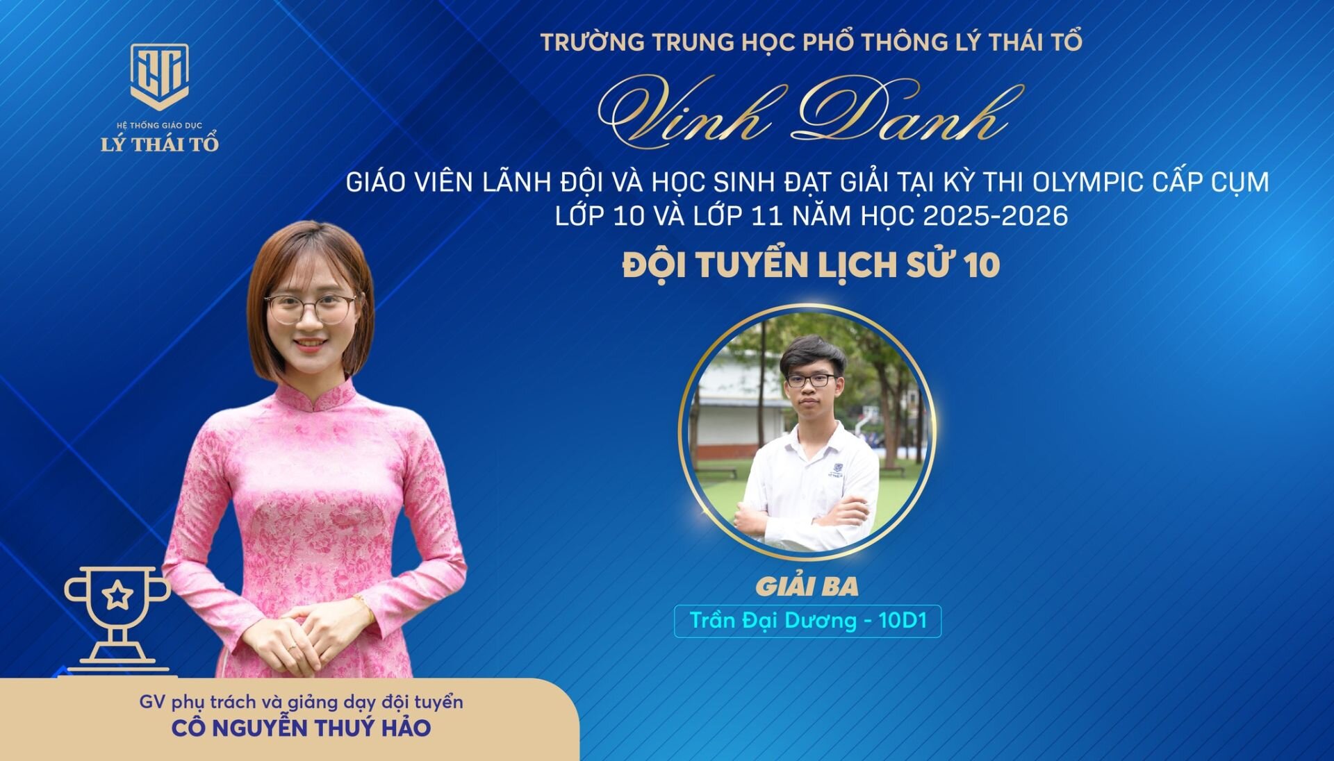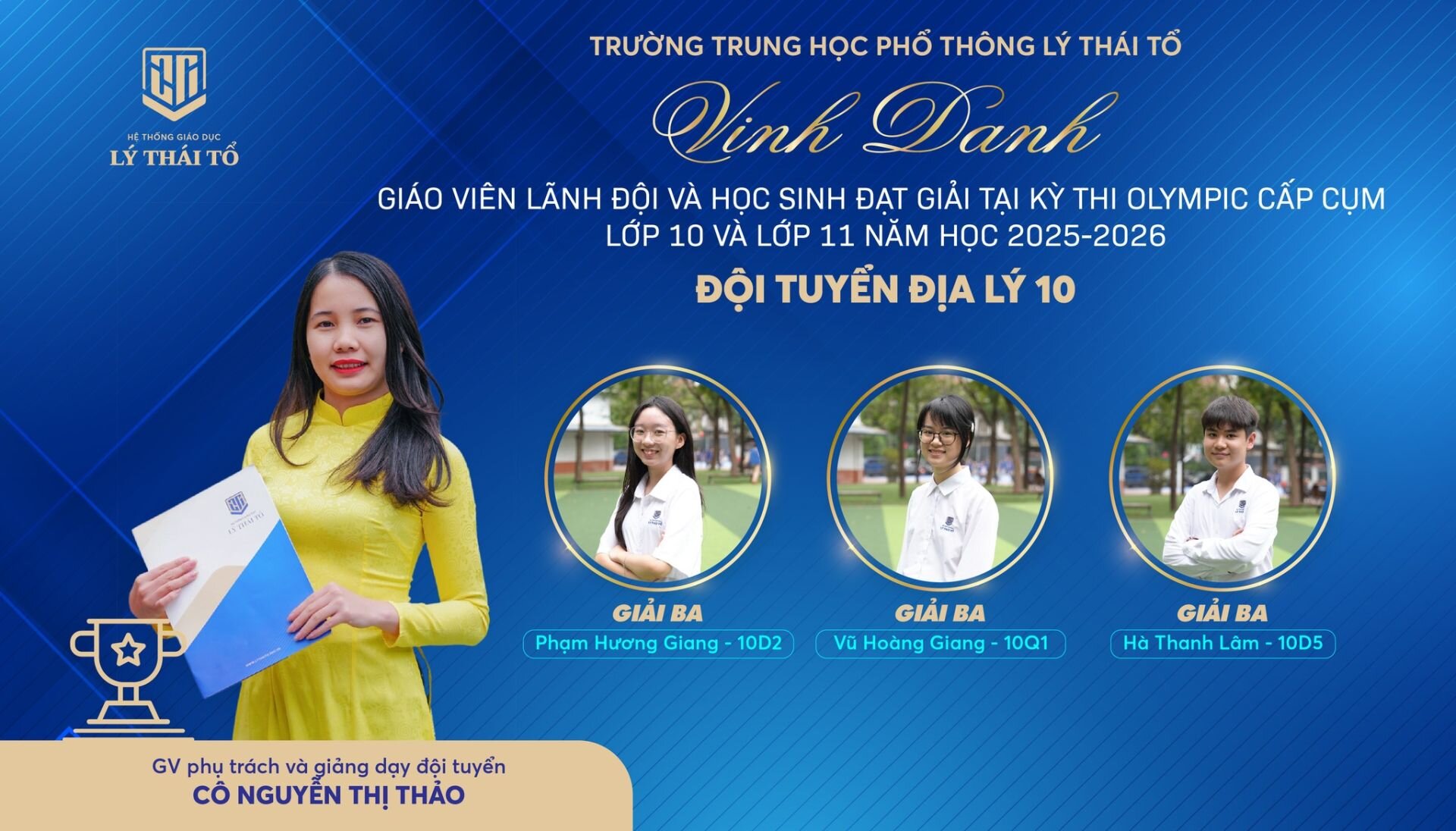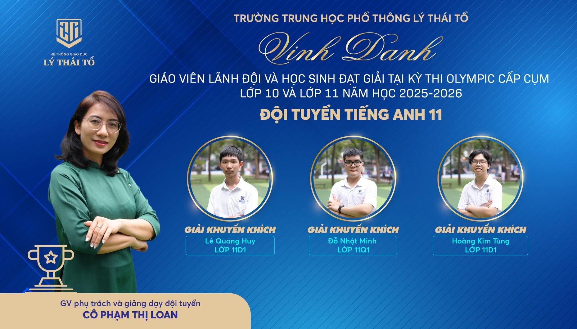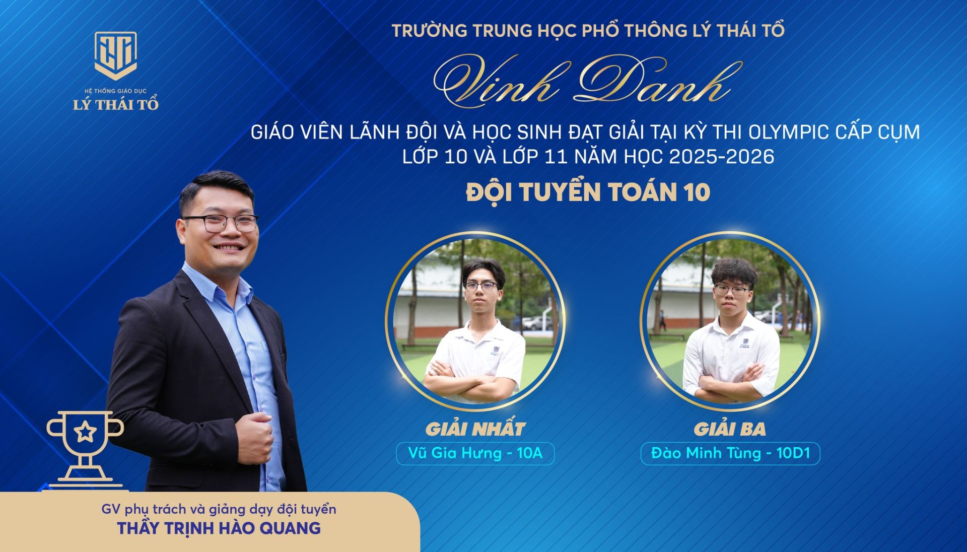 Nhà trường xin gửi lời chúc mừng tới các em học sinh đã xuất sắc đạt giải, các thầy cô giáo đã tận tâm dìu dắt, cùng các tập thể lớp có nhiều học sinh đạt thành tích cao. Hy vọng rằng, thành công hôm nay sẽ là bước đệm vững chắc để thầy và trò Trường THPT Lý Thái Tổ tiếp tục tỏa sáng ở những đấu trường tri thức lớn hơn, góp phần viết tiếp những trang thành tích rực rỡ cho Nhà trường.