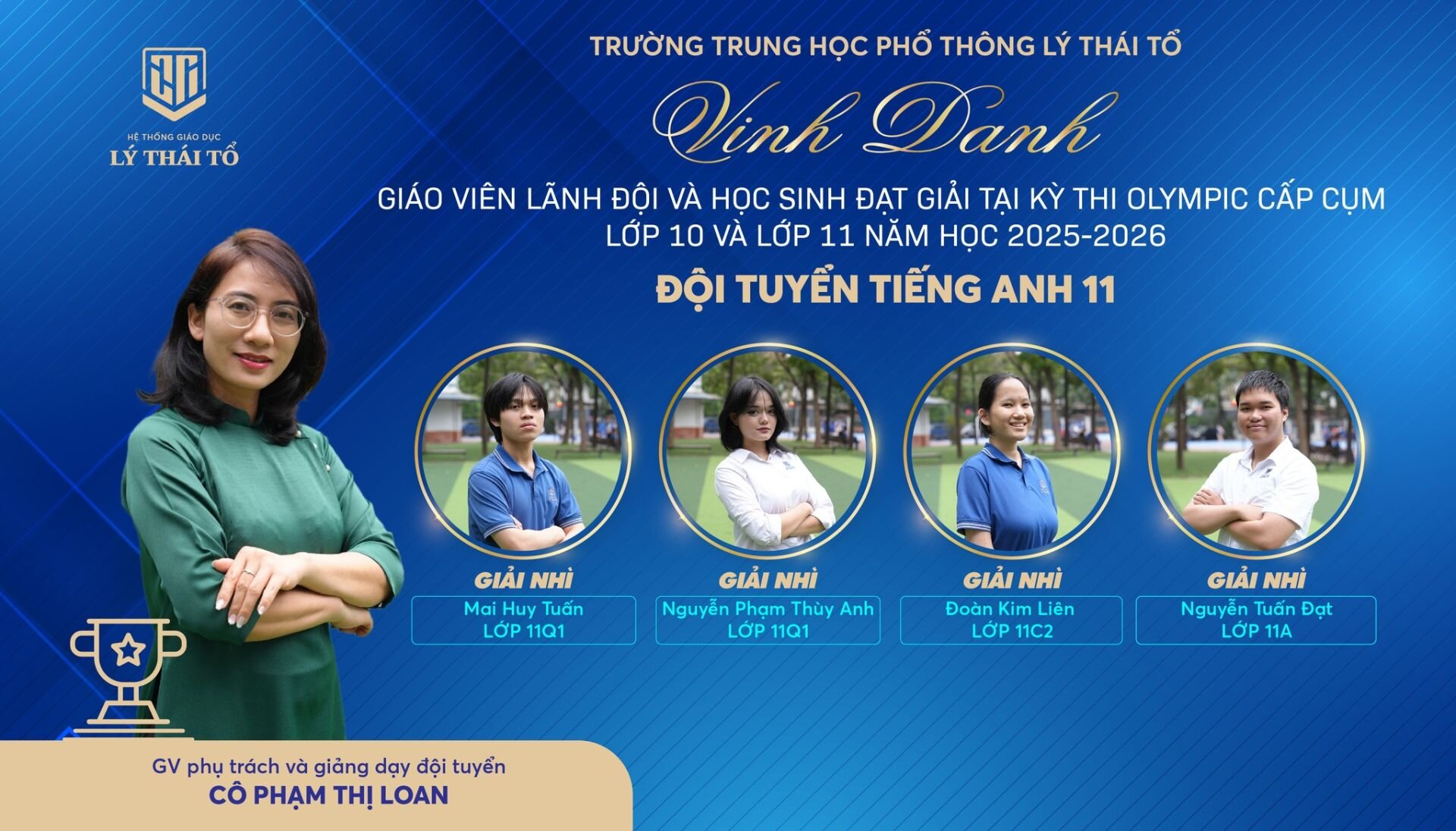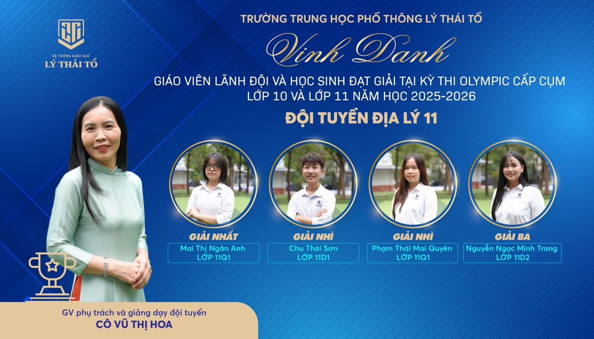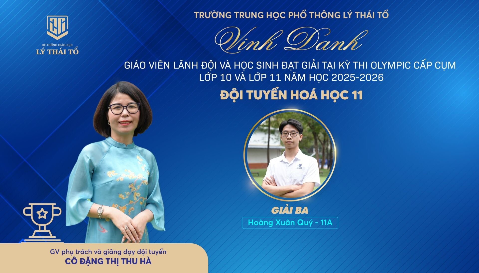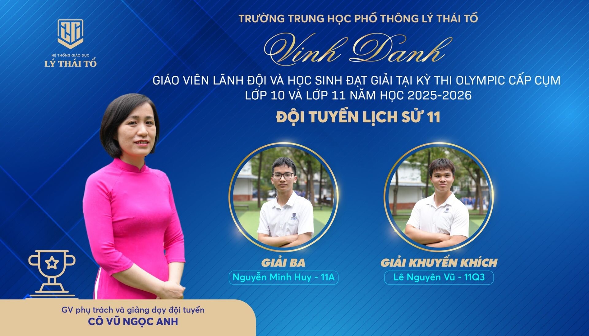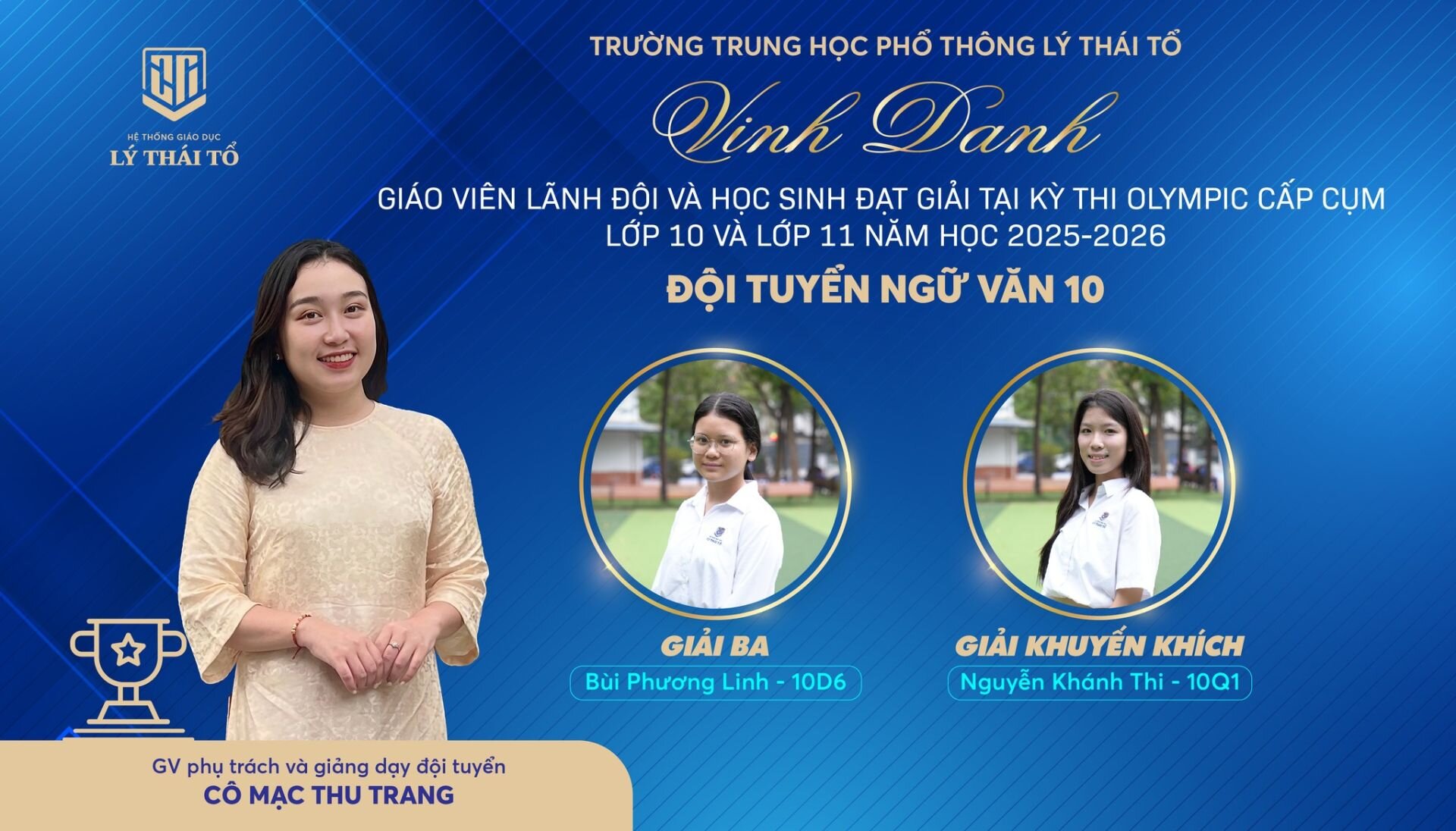 Nhà trường xin gửi lời chúc mừng tới các em học sinh đã xuất sắc đạt giải, các thầy cô giáo đã tận tâm dìu dắt, cùng các tập thể lớp có nhiều học sinh đạt thành tích cao. Hy vọng rằng, thành công hôm nay sẽ là bước đệm vững chắc để thầy và trò Trường THPT Lý Thái Tổ tiếp tục tỏa sáng ở những đấu trường tri thức lớn hơn, góp phần viết tiếp những trang thành tích rực rỡ cho Nhà trường.