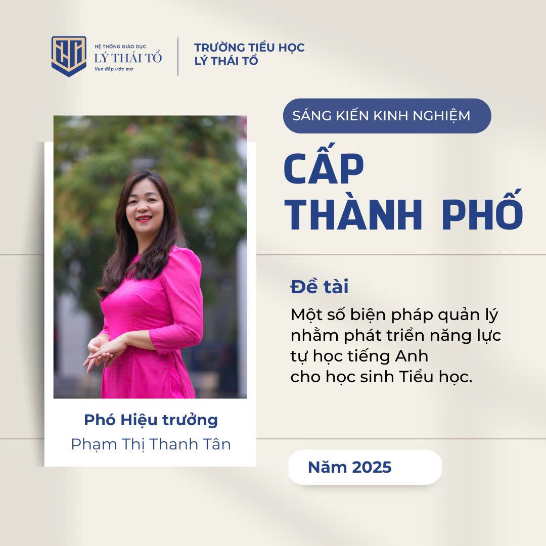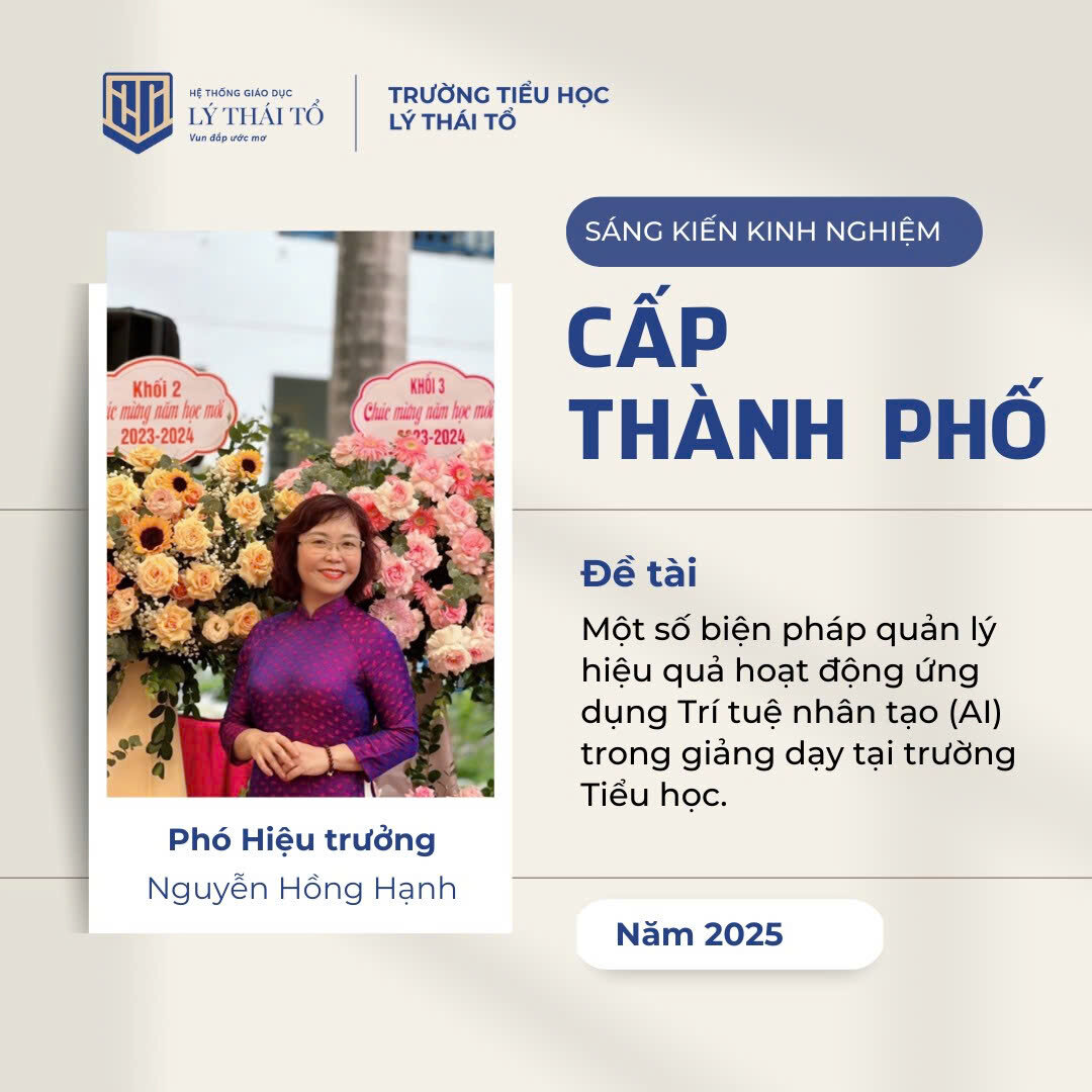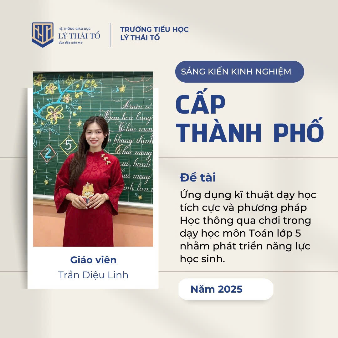 Năm học 2024–2025 ghi dấu bước tiến nổi bật của nhà trường với 6 sáng kiến kinh nghiệm được công nhận cấp thành phố. Đây là minh chứng rõ nét cho năng lực chuyên môn, tinh thần tự chủ nghề nghiệp và khát vọng đổi mới của đội ngũ giáo viên Lý Thái Tổ.