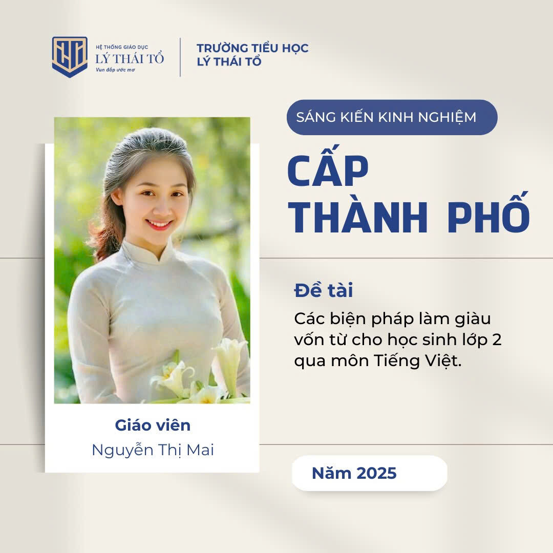 Trường Tiểu học Lý Thái Tổ tự hào giới thiệu 6 sáng kiến kinh nghiệm đạt cấp Thành phố năm 2025, minh chứng cho văn hóa nghiên cứu – đổi mới – sáng tạo tích cực trong đội ngũ giáo viên của nhà trường.