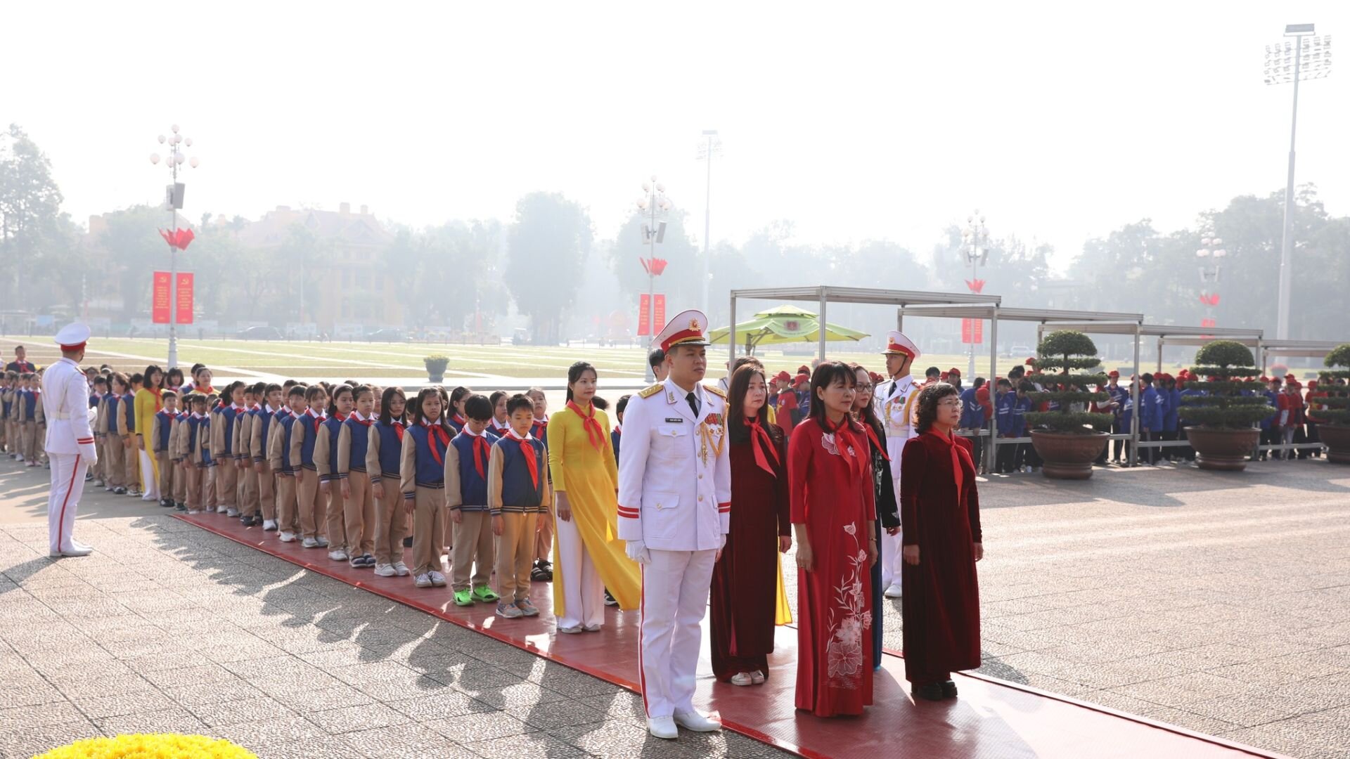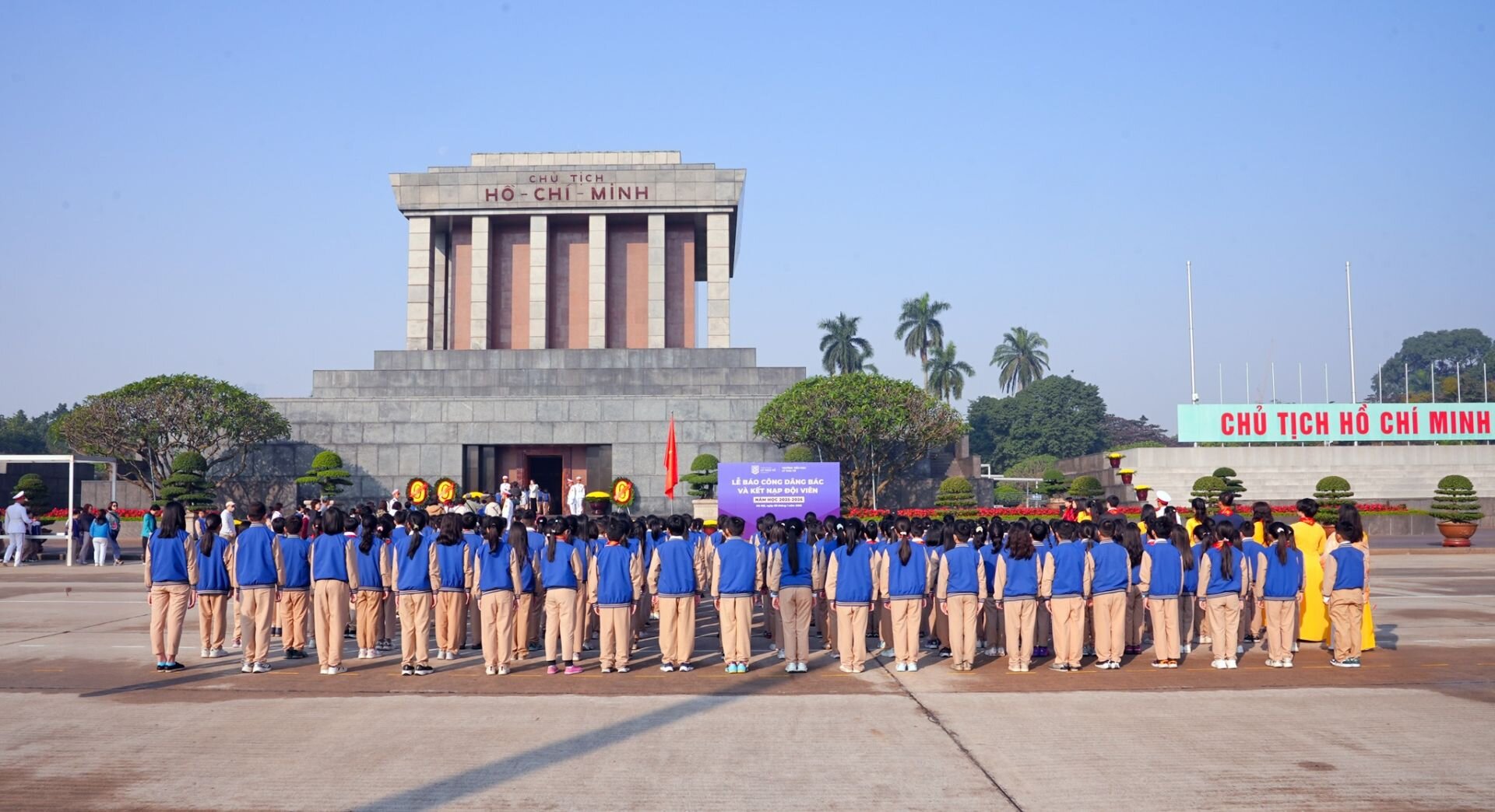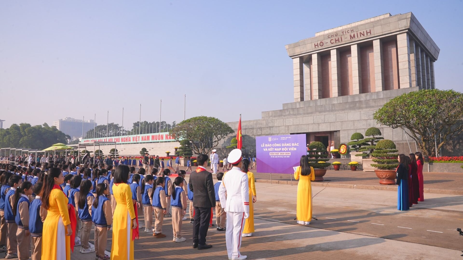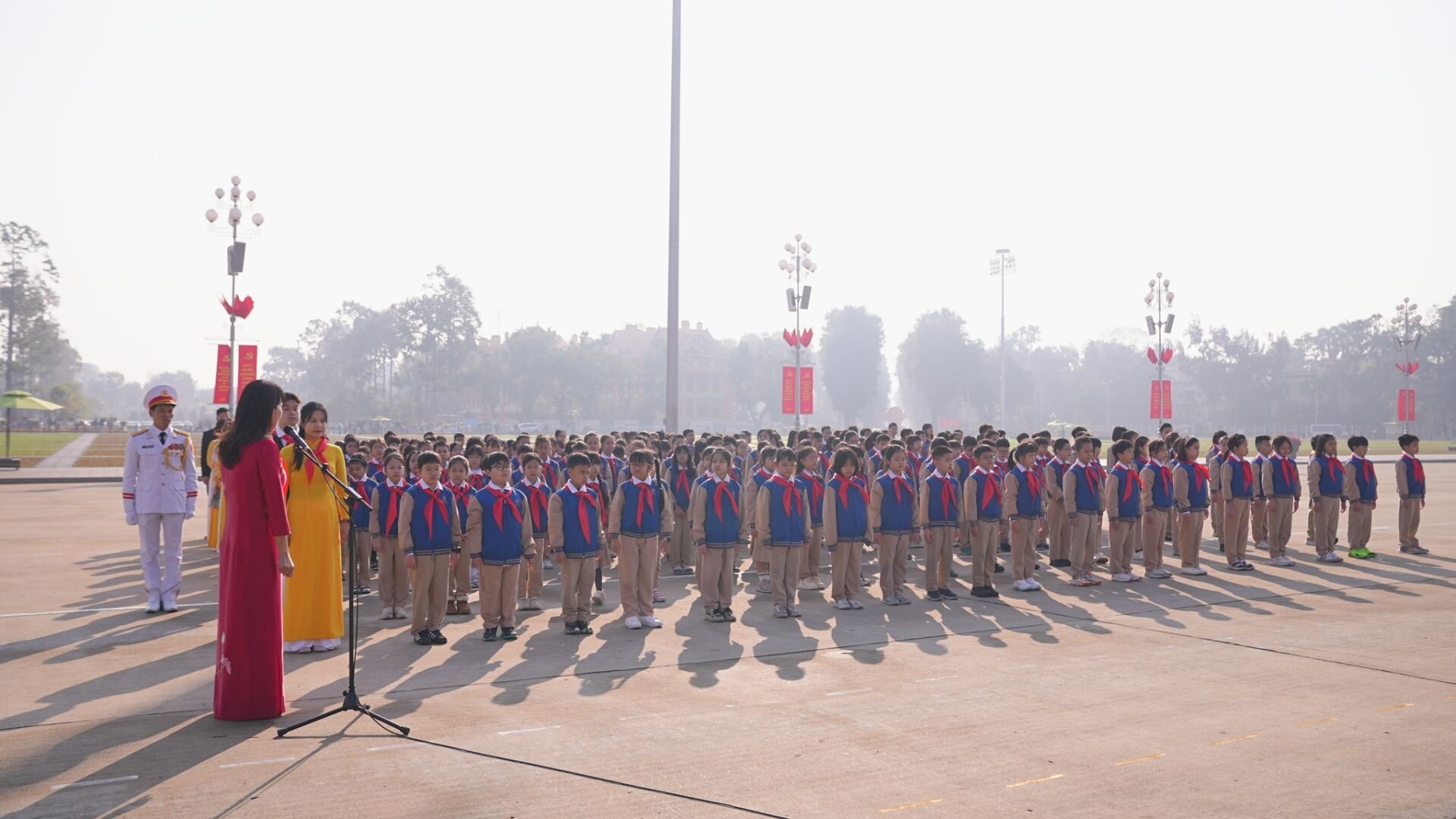 Ngày 8/1, tại Quảng trường Ba Đình lịch sử, trường Tiểu học Lý Thái Tổ đã trang trọng tổ chức Lễ Báo công dâng Bác và kết nạp Đội viên mới